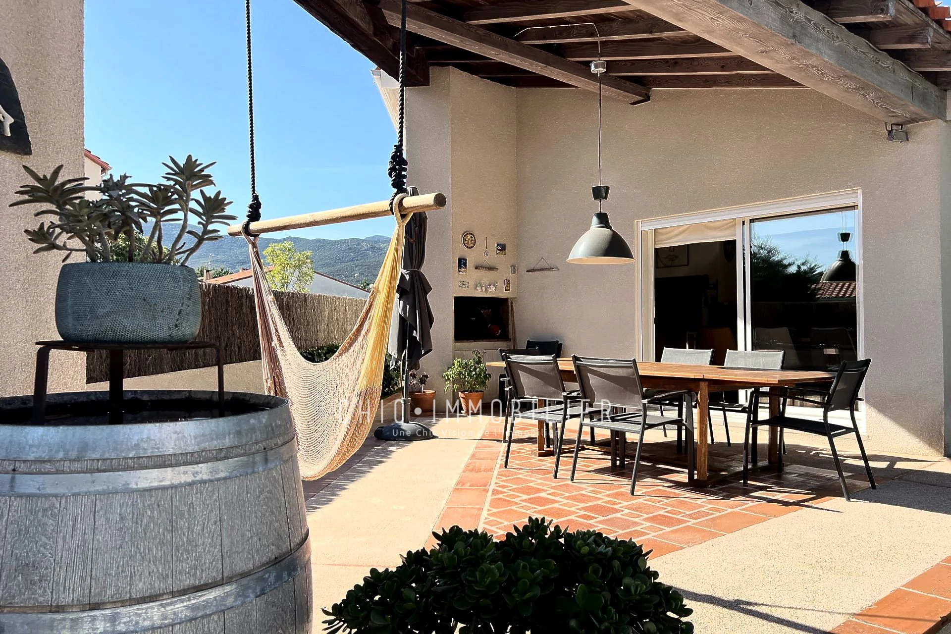 Une charmante maison de 155 m² avec vue sur les montagnes à Argelès-sur-Mer. Sur un terrain de 537 m², cette maison est idéalement située, offrant une exposition Sud Ouest.